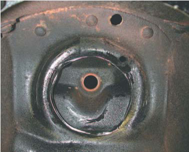 The same goes for the lower cross shafts. Here you can see how the bushing is pushed out from the inside.