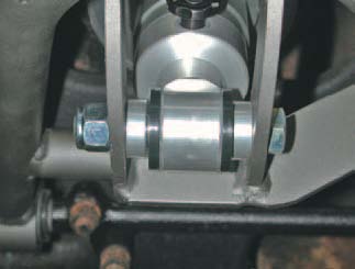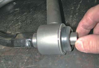 Bolt the lower control arm onto the original location. Crank the mounting bolts tight but leave the bushings (upper and lower) loose until you have them at ride height. Bushings are in tension above or below ride height if installed right.