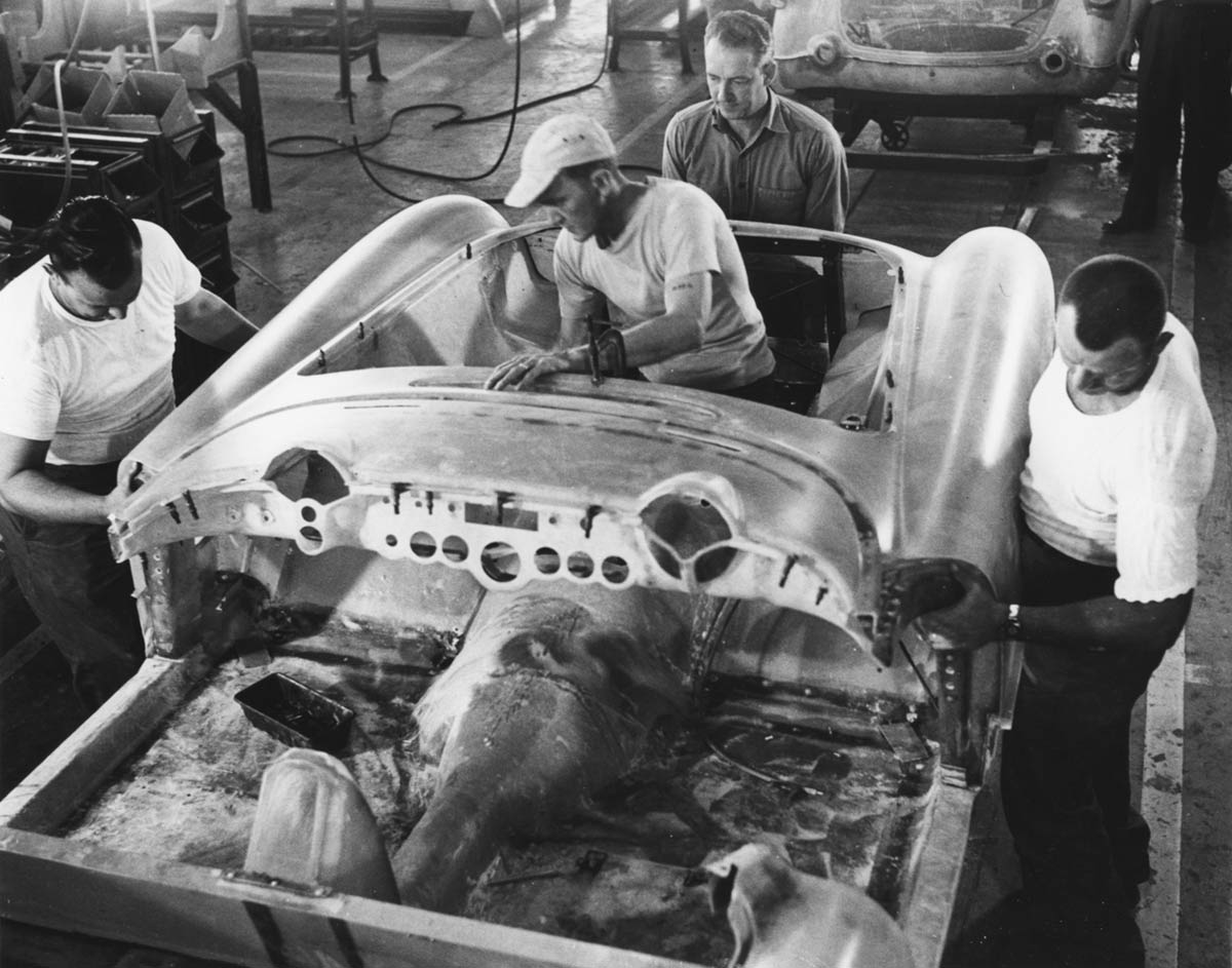 Building the first Corvette. The American auto enthusiast didn’t even know they wanted a sports car; that is until they were introduced to the new Corvette at the GM 1953 Motorama. One look at the new Chevrolet two-seater Corvette was all it took. The Corvette line was here to stay.