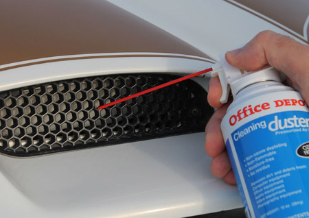 Here's a great tip, using canned air! Dust Buster (or a generic “canned air” product) is commonly used to clean computer keyboards. Basically, it is cold, compressed air in a can. It works great for blasting unwanted debris from your car’s nooks and crannies. We’ve used it to blast dust from interior vents and to remove dried, crusty wax residue on the exterior (especially around emblems). The air comes out of the can under high pressure and is extremely cold, so short bursts work best. If you’re concerned about the pressure damaging a part, use from a further distance and try light “bursts” first.