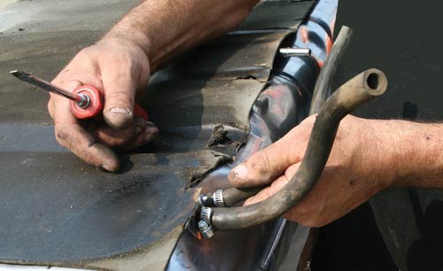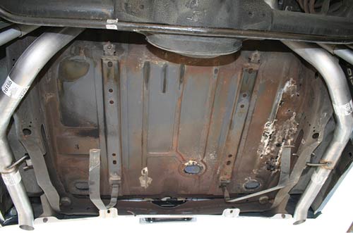 The original tank actually still looks pretty good from this never-seen view. The sound/rattle insulation pad was holding together quite well after 45 years of service.