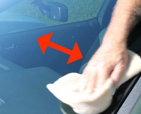 When cleaning your windshield, use a short nap microfiber and clean in one direction on the inside and the other direction on the outside. This way you don't have to chase streaks and you can tell if you need a final wipe on the inside or out.