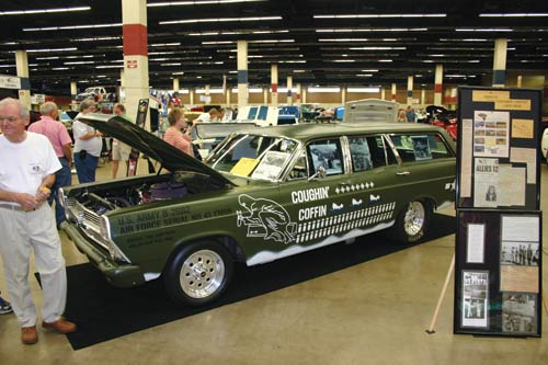 This ā66 Fairlane wagon, the āCoughinā Coffinā, is a tribute to the 1944 WWII Marauder bomber and her crew. Read more about the Coughin' Coffin here:Ā http://blog.macsautoparts.com/1966-fairlane-wagon/